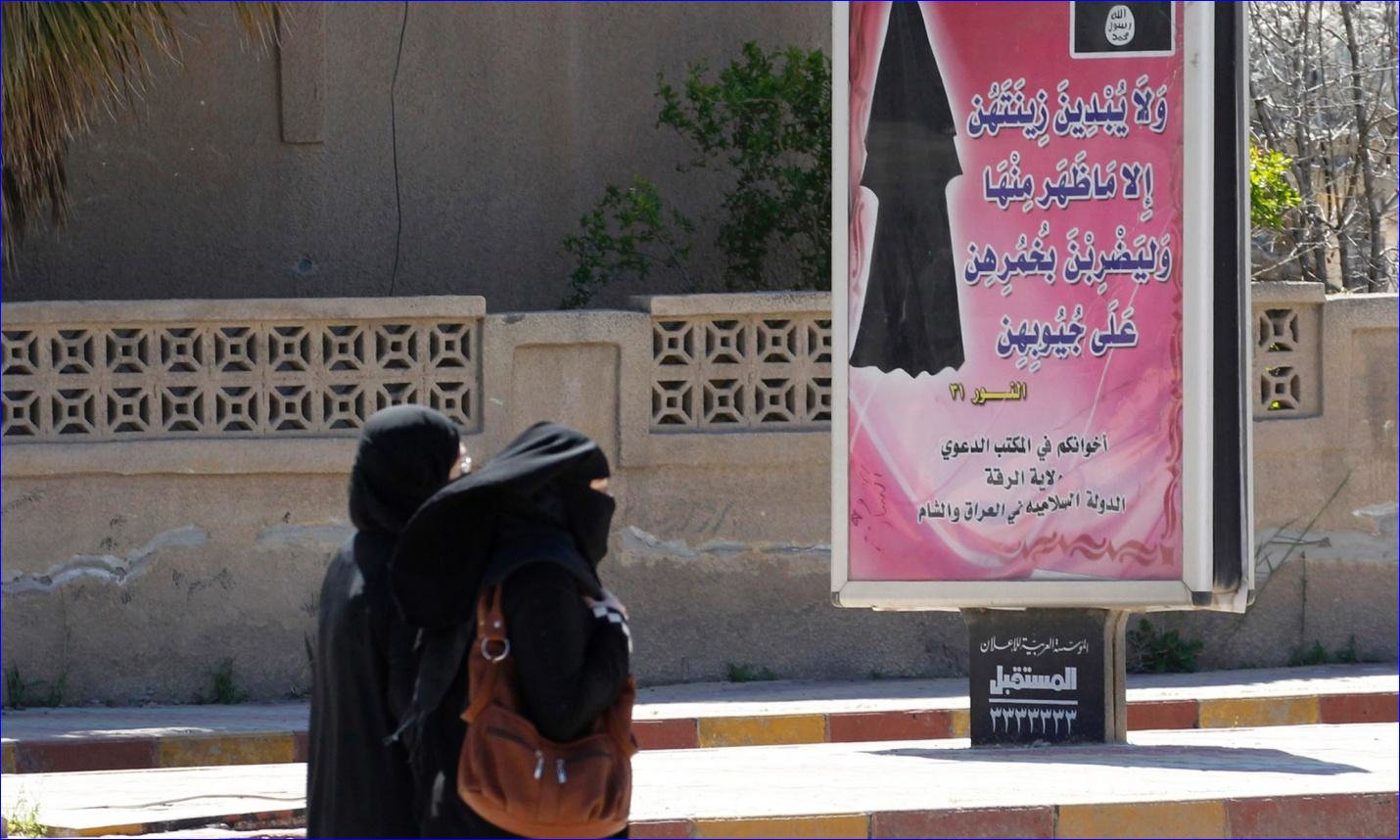 In Raqqa, the Isis "capital" in Syria, women were initially ordered to wear a black abaya covering the entire body. Soon after, a command to wear a veil was issued, then a third ordered a shield on top of the abaya. Women are also instructed to wear only black, including gloves and shoes. Isis subsequently ordered women to hide their eyes, requiring a a double-layered veil.